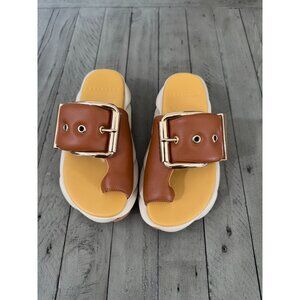 4CCCCEES Mellow Glow Platform Leather Buckle Sandals Brown Size 35 5