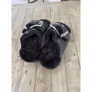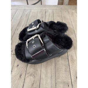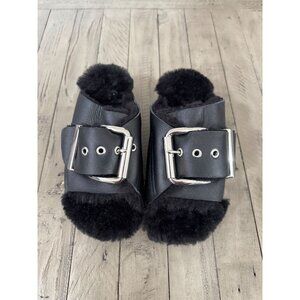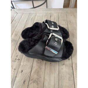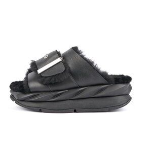 4CCCCEES Mellow Laze Platform Shearling Fur + Leather Slide Sandals Black Size 35 5