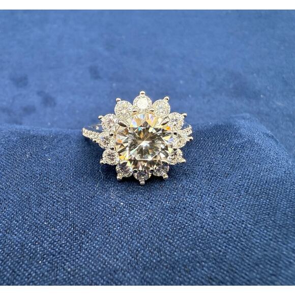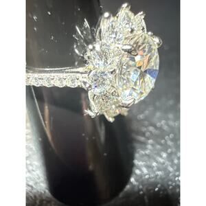 4CT Flower Cut Moissanite Halo Sterling Silver Ring Sz 9
