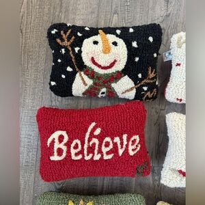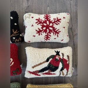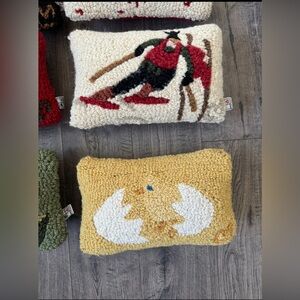 Never used or displayed. Set of 6 4-Corners hooked wool pillows. Cute seasonal designs! 100% natural wool. Original retail is $40 per pillow.
