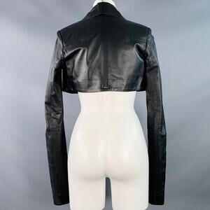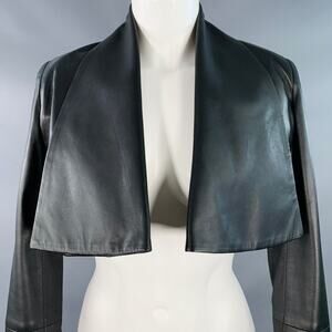 4G Size 0 Black Leather Cropped Large Lapel Open Front Jacket Blazer