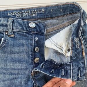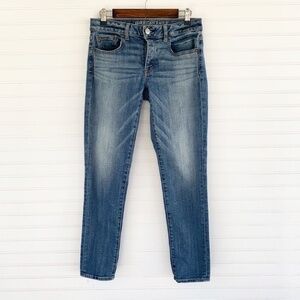 AEO American Eagle Outfitters Boy Jean Stretch Blue Denim Straight Leg Mid Rise Jeans