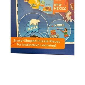 A bundle of educational games and puzzles. There is one math addition and subtraction game, a puzzle of the United States, a puzzle of the world, and a Disney matching game.