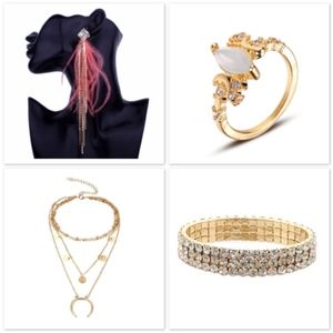 🌸 4PC SET EARRINGS NECKLACE BRACELET RING GOLD HORN MOON BUNDLE SET BOHEMIAN