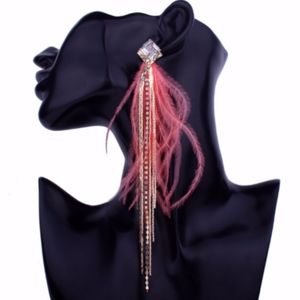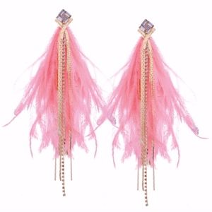 UNIQUE STYLES BOUTIQUE - New 4PC pink Feather Ostrich Faux diamond Rhinestone Bling Long Large dangle drop earrings, gold moon layer necklace, 3 row stretchy bracelet & moonstone size 7 ring. Very BoHo chic hippie love gypsy tribal jaasa bohemian sisters urban outfitters classy free style honey festival bridesmaid betsey Johnson Barbie diva fashion nova bebe flying fairy goddess prom Victoria Melissa wedding Michelle Mary babe raga ** More Designs go to "brand" under "Unique Styles jewelry set”