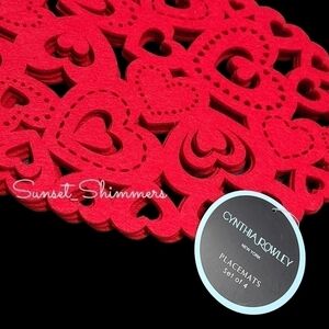 4pc Set Cynthia Rowley Valentine Cut out Heart Shaped Placemat Chargers New.