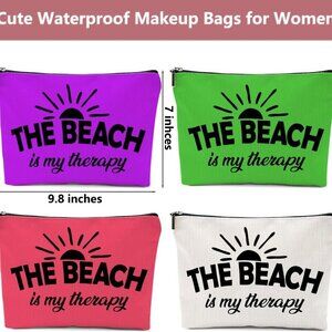 4PCS Beach Vacation Essentials Makeup Bag, Cute Cosmetic Bags for Women, Beach A