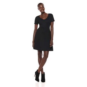 Lark & Ro Women's Short Sleeve Textured Bateau Fit and Flare Little Black Dress SIZE 4 NEW