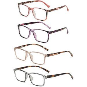 4-Pack Stylish Reading Glasses Colorful Anti-Blue Light, Anti-UV/Anti-Glare X1.0