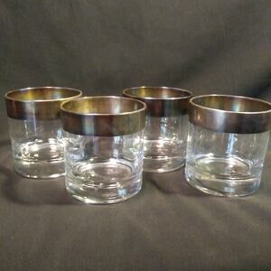 4Pc Mad Men Barware MCM Dorothy Thorpe Silver Band 10 Oz Flat Tumbler Glasses