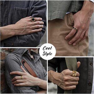 *PREMIUM QUALITY: The mens signet ring set are made of high quality 316L stainless steel, hypoallergenic, nickel free, scratch and fade resistant. Well electroplating process, high polished surface, long color retention, comfortable to wear for a long time.