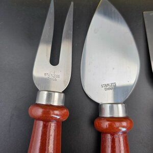 4-Piece Stainless Steel Cheese Knife Set With Red Wooden Handles Charcuterie