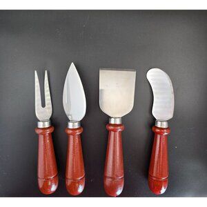 4-Piece Stainless Steel Cheese Knife Set With Red Wooden Handles Charcuterie