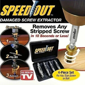 This 4-piece SpeedOut Damaged Screw Extractor Set is designed to remove stripped, damaged, or broken screws. It's a handy tool to have around the house for various DIY projects. Made from steel for durability, the set includes four different extractor sizes.