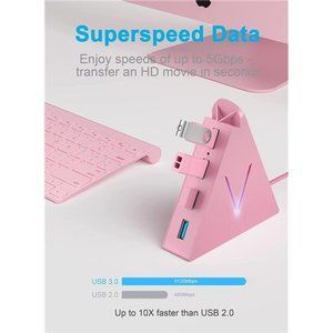 4-Port USB 3.0 Hub, FlyingVHUB Vertical Data USB Hub with 2 ft Extended Cable