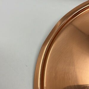 This is a beautiful 4QT Copper Stock Pot with Lid. In excellent pre owned condition. Could use a bit of polish, but overall no other issues, beyond a very slight bend on a very tiny portion the lip of the lid. Brass handles. 6” Tall and 23” Circumference.