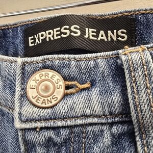 {4R} EXPRESS Original Girlfriend Two Toned Blue Denim Jeans Raw Hem