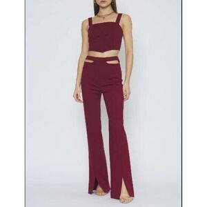 4SI3NNA BDSK4866 Women Sz S Burgundy Sheena High Rise Pants w/Cutouts/Slits