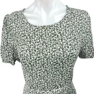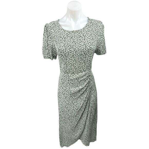 4SI3NNA Green Floral Puff Sleeve Ruched Button Slit A-Line Wrap Midi Dress Sz L