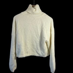4SI3NNA Ivory Cropped Soft Textured Turtleneck Sweater NWT Sz S