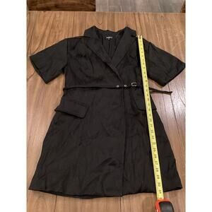 4SI3NNA Lorenzo Short Sleeve Belted Blazer Dress Notch Collar Black Medium