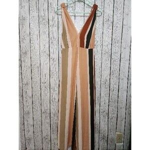 4SI3NNA Maxi Jumpsuit Romper Spring Colorful Stripes Wide Leg V Neck Belt Zip. I ship every day, I do not accept returns, and ask that you please view all pictures before purchasing. I am open to offers and feel free to message me with questions.