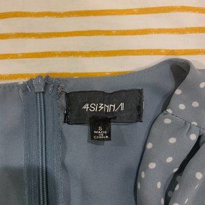 I bought this on a whim and was impressed by how well constructed and designed it was (decided to keep it a lot longer than anticipated!) V-neck is the perfect depth, and the waist tie adds a nice touch of waist emphasis. The body is opaque, but the flutter sleeves are sheer, which adds nice contrast. The wrap part of the dress is built-in, so it won’t be undone by pulling a string. Lastly, there’s an invisible zipper in the back. Size S but can also fit an XS and possibly a small M.