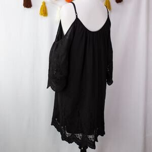 4Sienna NEW Black Cold Shoulder Floral Embroidered Mini Dress Size Medium