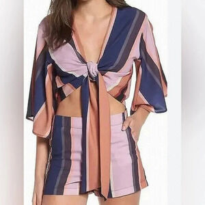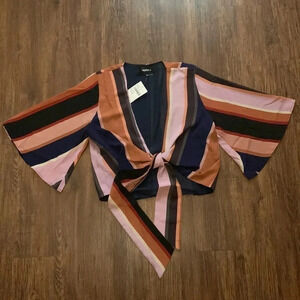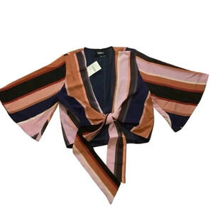 4Sienna Striped Cropped Top Blouse Size Medium New