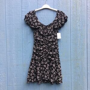 4Sienna Women Size Medium Black White Floral Ruffle Mini Dress