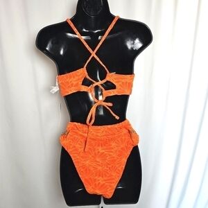 4.🆕Small Cupshe Orange 2-Piece Floral Jacquard Print High Waist Bikini Swimsuit