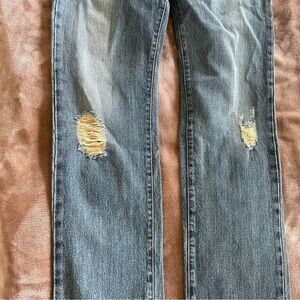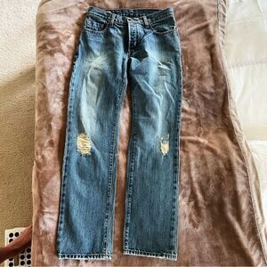 Stylish and comfortable, these blue distressed jeans are perfect for a casual look. Crafted for durability and style. Let me know if you have any questions!