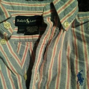 Ralph Lauren long sleeve size 4Tbutton down shirt colors are white blue and red.