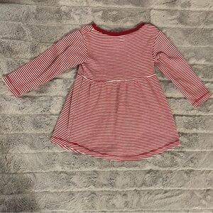 4T Red & White Striped Long Sleeve Shirt Dress, Bow, Organic Cotton