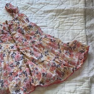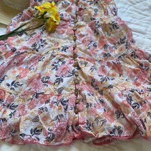 Whimsical, sweet, and pure fun! This little dress is lined with a full button front and flutter sleeves. Elastic on back seam.