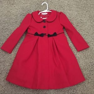 Toddler 4T Bonnie Jean red and black holiday dress and jacket set. So adorable. Cute black buttons and bows. Worn once for pictures. Like new condition. See photos