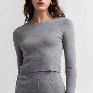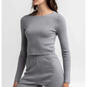 4th & Reckless Leah Knit Tie Back Gray Top. Crew neckline. Long sleeves. Open back with dual tie details. Knit top. New with tags. 50% viscose/30% polyester/20% polyamide. Machine wash. Imported. Model is wearing a size small. Model measurements: Height: 5'7.5" Bust: 31" Waist: 24" Hips: 35"