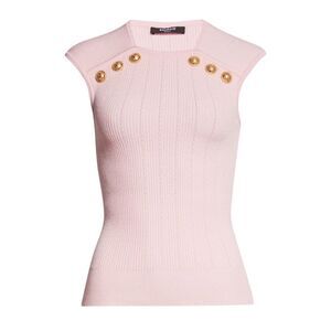 4US / 36FR Authentic Pink Balmain Sleeveless Gold Button Pointelle Tank Sweater