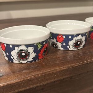 4 Vintage 1960s Georges Briard Polka Poppy 4" Ramekin Bowls/Ceramic Ovenware