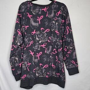 4X 26W Torrid Grey Pink Ribbon Cozy Fleece Sweatshirt Breast Cancer Awareness ribbon print crew neck long sleeve roses. NWT Torrid. Measurements for reference only approximately shoulder to hem 32" under arm to under arm 29" sleeve inseam 21" wt 1lb