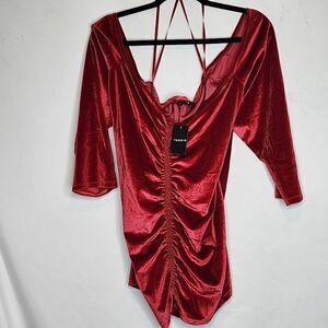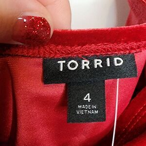 4X 26W Torrid Red Stretch Velvet Shirred Front Off Shoulder Top Holiday Naughty Sexy Red New Years Goth Stretch. Measurements for reference only approximately neck to hem 20" under arm to under arm 26" sleeve inseam 16" wt 14oz