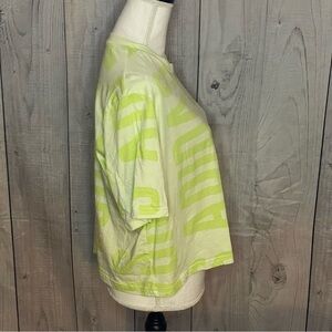 This top is like new and was only worn one time. It is 100% cotton and machine washable. It was washed and dried one time so please check measurements for an accurate fit. It is a bright green color with the logo on it. This is a great top for any casual outing.