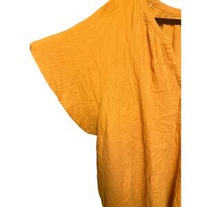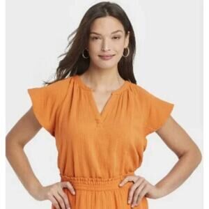 This Plus Size Universal Thread top offers an easy, relaxed fit designed for comfort and everyday wear. Made from 100% cotton, it features a lightweight, breathable texture with a naturally crinkled finish that adds casual charm. The notched neckline and flutter sleeves bring a soft, flattering touch, while the rounded hem provides ease of movement and a laid-back drape. Perfect for pairing with jeans, shorts, or layered under a denim jacket, this oversized silhouette offers effortless style for any season.