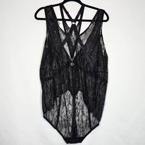 4X 26W Torrid Black Lacy Bondage Bodysuit Neck Harness Lingerie Plussize Thong Sheer mesh snap closure strappy adjustable. NWT Torrid. Measurements for reference only approximately neck to snap 28" under arm to under arm 23" wt 7oz