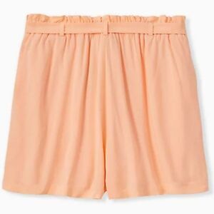 4X 26W Peach Paperbag Waist Mid Shorts Lined Light, Challis fabric, pockets, belt loops, tie waist, rayon. NWOT Torrid. Measurements for reference only approximately waist to hem 18.5" waist across 23" inseam 4.5" weight 13oz