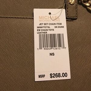 A chic, chain-accented carryall shaped in durable saffiano leather Double top handles Top zip closure One inside padded pocket One cellphone pocket One zipper pocket One key chain Four open pockets Leather Imported Brand new, still with tags MK purse. Super cute and elegant shoulder bag/tote. Model: 38s6ytct3l Color: dune 100% authentic. ✨