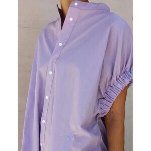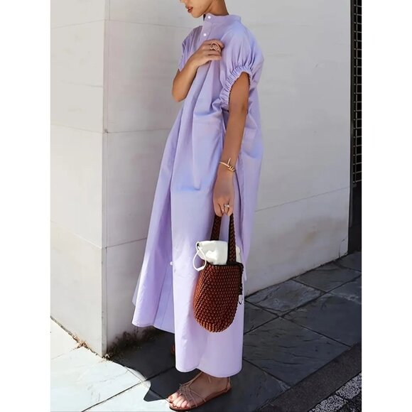 4XL Ruched Sleeve Lavender Button-Down Casual Dress