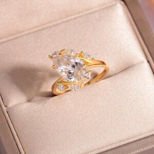 4ct Pear Moissanite Ring Gold Plated 925 Silver Royal Vintage Cluster Halo
