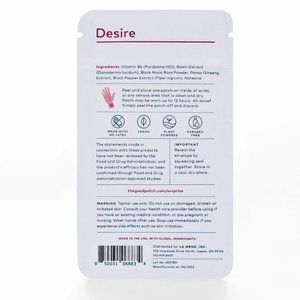 The Good Patch's Desire Plant Patch is a plant-powered wearable wellness patch to help set the mood. Infused with Vitamin B6, Reishi and Black Maca. Feel the sparks and awaken your inner goddess.