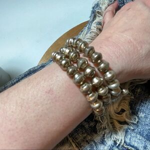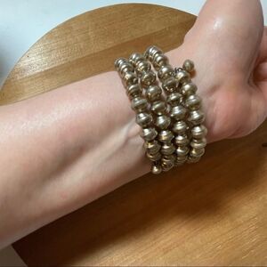 4 for $20 Shabby chic memory wire bracelet of faux pearls